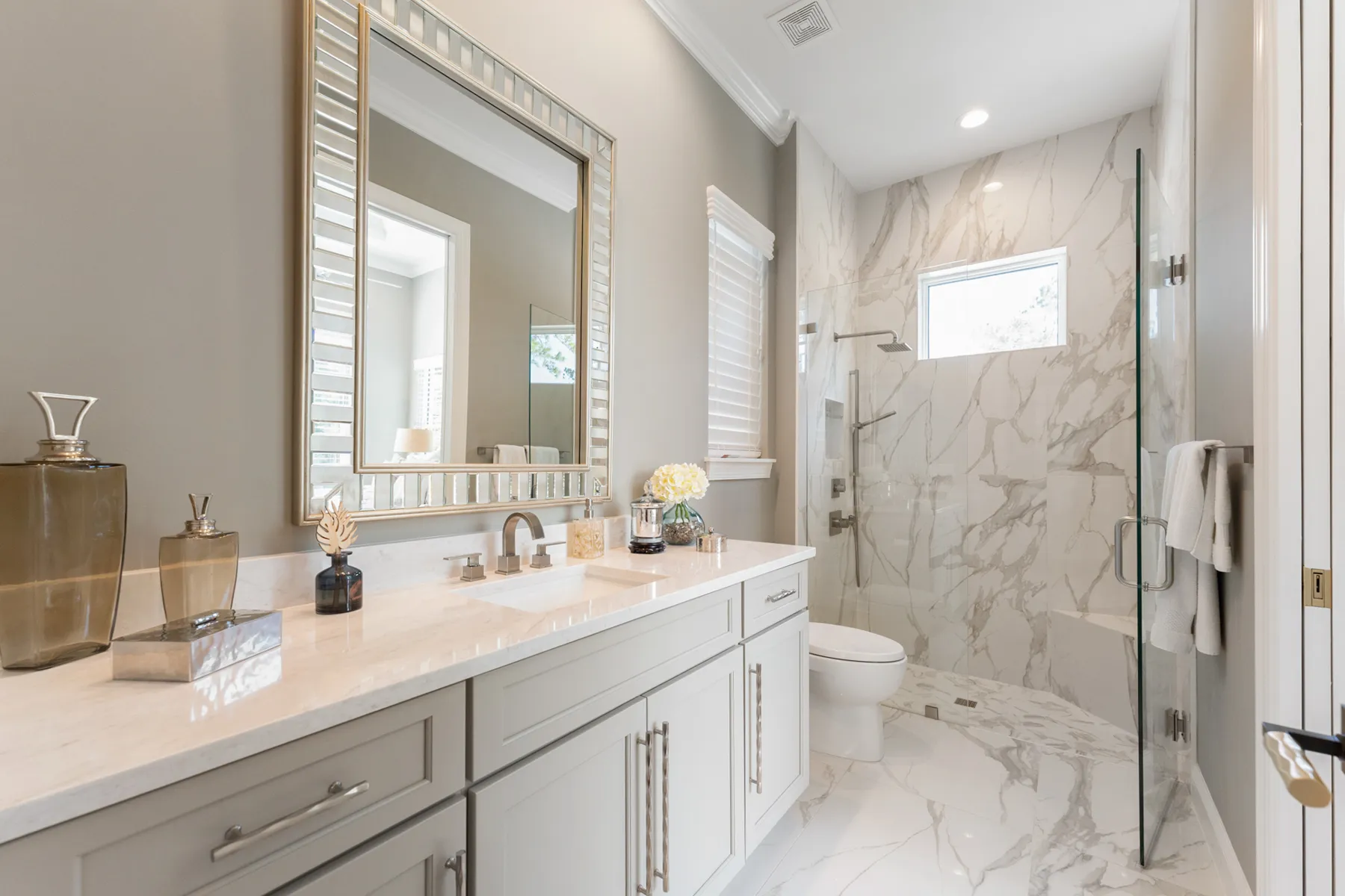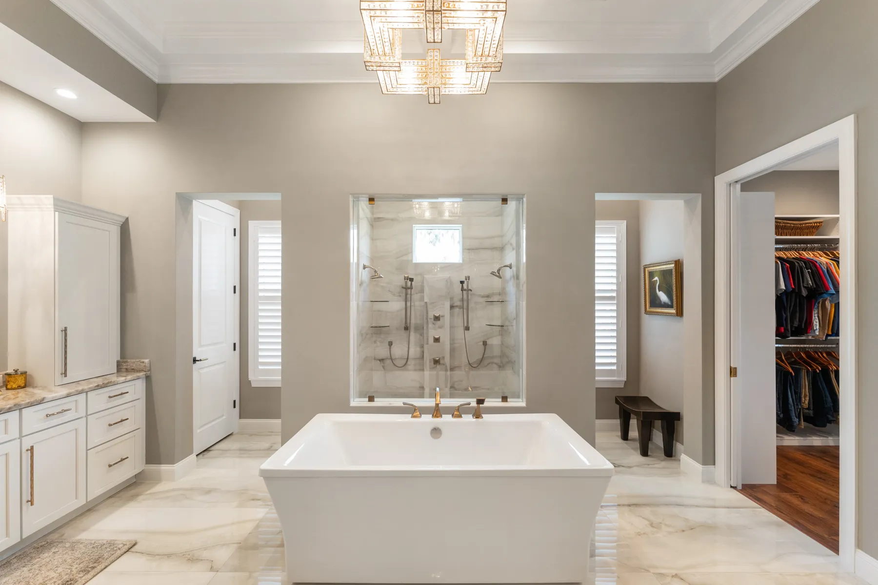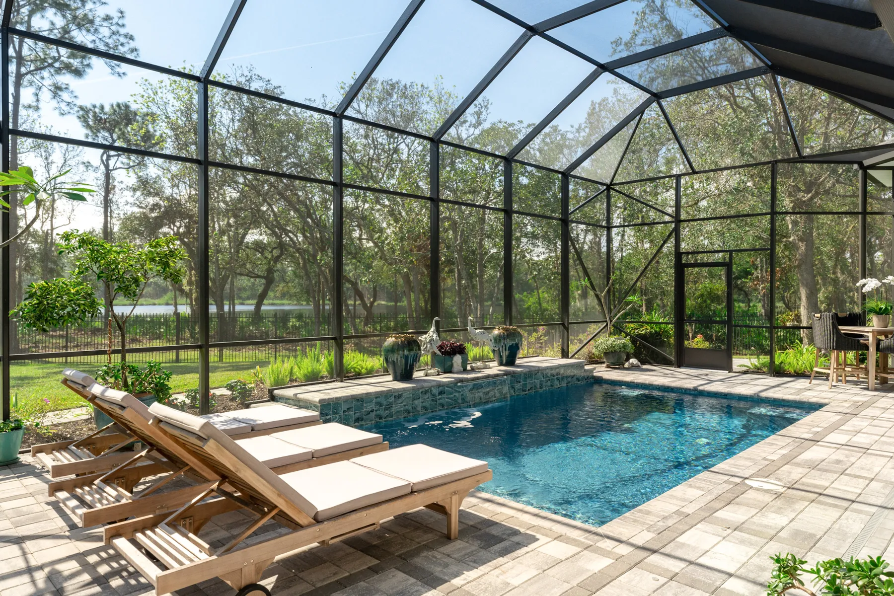 Bathrooms are spa-inspired, with marble finishes and modern fixtures, while the bedrooms offer retreat-like privacy. Outdoors, the screened lanai, custom pool, and multiple lounge areas create a resort-style experience perfect for Florida living. This home was also featured in the Ormond Beach Observer for its standout design and community presence — read the full article here.